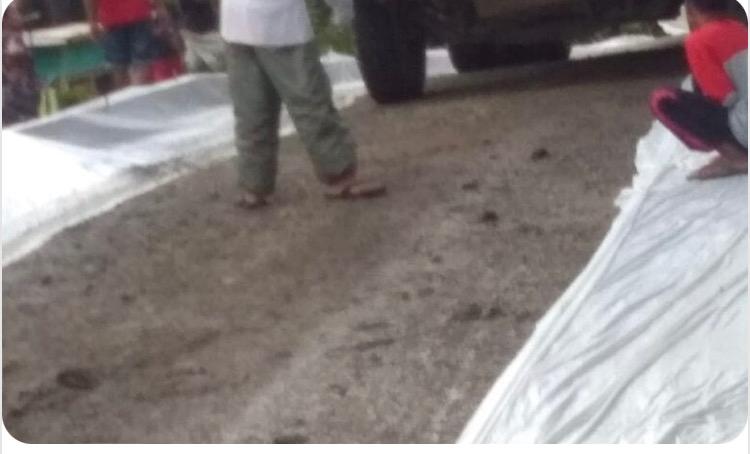 Bangunan jalan rabat beton tersebut, ditemukan dalam keadaan retak-retak di beberapa bagian badan jalan yang menyebabkan masyarakat setempat merasa kecewa dan kesal.