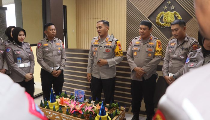 Watansoppeng, Centerinvestigasi.id Dalam rangka memperingati Hari Ulang Tahun (HUT) Lalu Lintas Bhayangkara Ke-69, Kepolisian Resor (Polres) Soppeng menggelar acara syukuran di Ruang Lobi Markas Kepolisian Resor (Mapolres) Soppeng. Jumat (4/10).