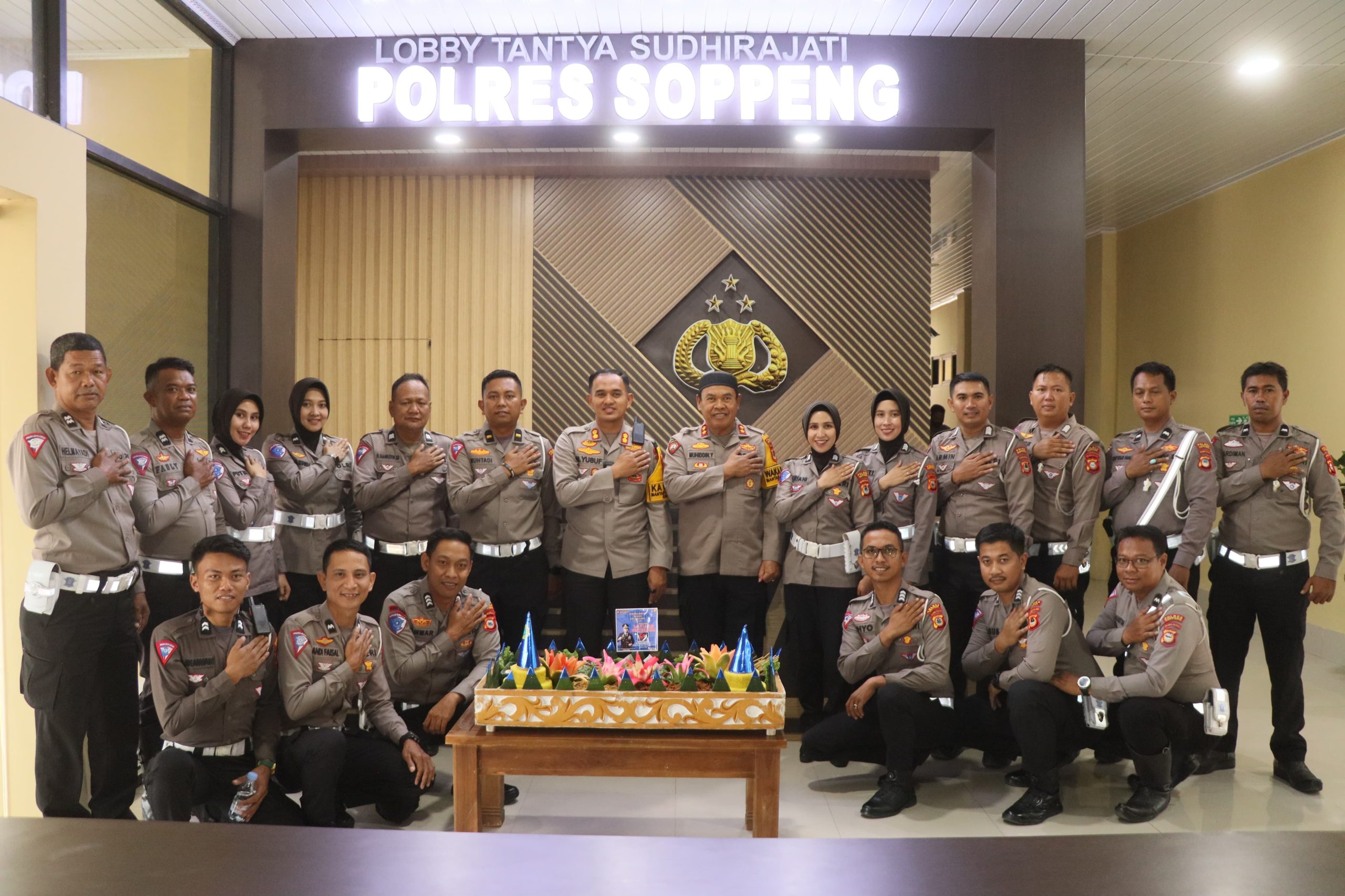 Acara Syukuran HUT Lalu Lintas Bhayangkara Ke-69 yang mengusung tema “Polantas Presisi Hadir Menuju Indonesia Maju” berlangsung dengan khidmat dan dihadiri oleh Kapolres Soppeng  AKBP Dr H. Muhammad Yusuf Usman SH., SIK., MT., CIPA Wakapolres AKBP H. Muhiddin Yunus SH., MH., dan Personil Satuan Lalu Lintas (Sat Lantas).