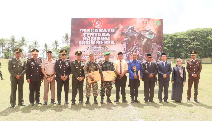 Upacara peringatan HUT ke 79 TNI di Kodim 1423 Soppeng, diwarnai dengan rangkaian Lomba Olahraga Tradisional antar intansi, yakni lomba Tarik tambang tempur dan Lomba Balap Terompa.