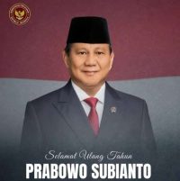 Selamat Ulang Tahun Presiden terpilih Bapak H. Prabowo Subianto Djojo Hadi Kusumo ke 73 tahun (tanggal 17 Oktober 2024). Semoga panjang umur sehat selalu bahagia selalu bersama keluarga, semoga Allah SWT senantiasa memberikan perlindungan dan kasih sayangnya kepada bapak kearifan & amanah dalam memimpin bangsa & rakyat Indonesia menjadi lebih sejahtera, berdaulat, adil & makmur.