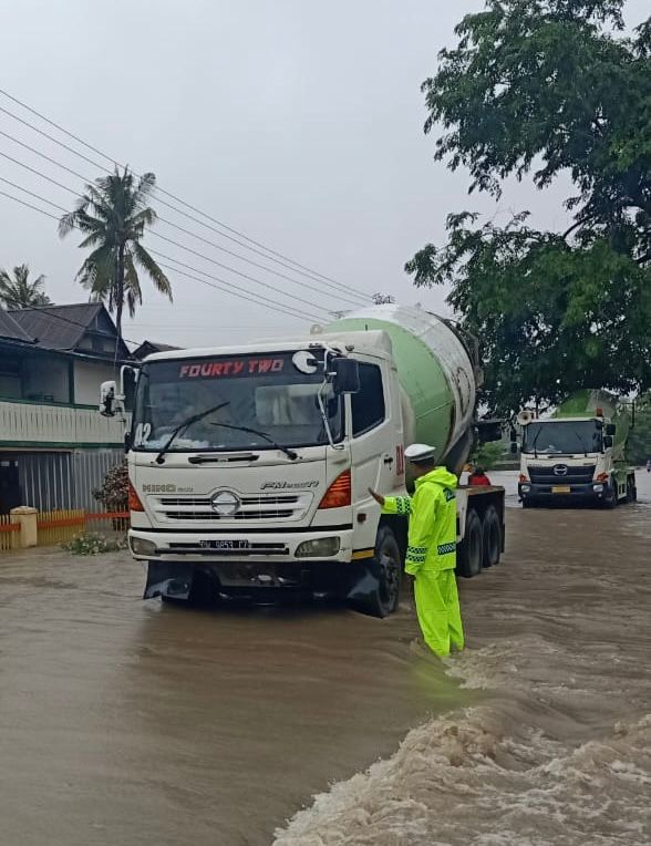 Kanit Turjawali, IPDA Firman Usman, menyampaikan bahwa pemantauan tersebut dilakukan untuk mengantisipasi risiko bagi pengendara roda dua maupun roda empat yang biasa melintasi jalur tersebut. Akibat genangan air, arus lalu lintas di jalan tersebut untuk sementara waktu terputus.