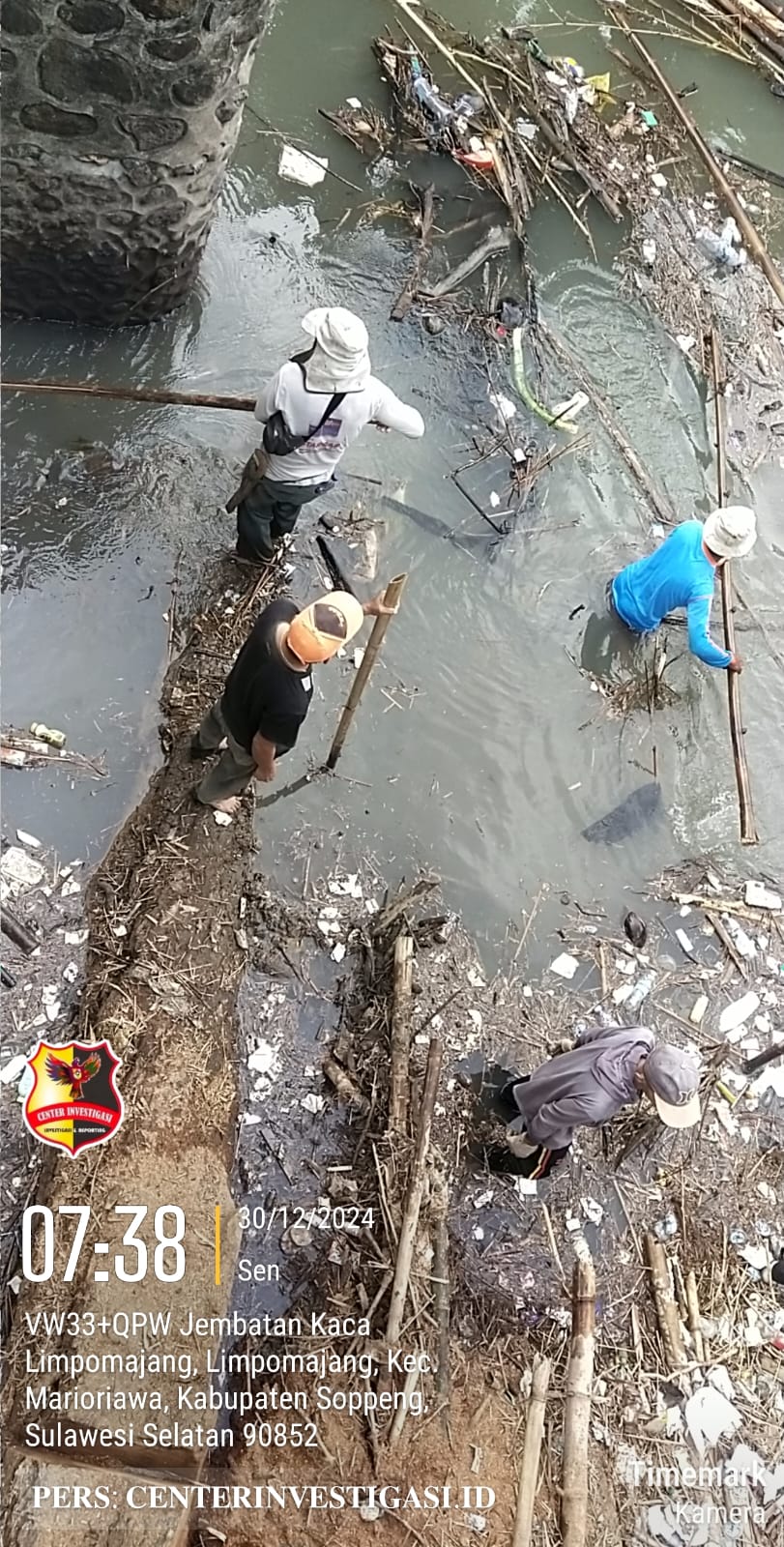 Watansoppeng, Centerinvestigasi.id – Dalam rangka menjaga kebersihan lingkungan dan mencegah banjir di musim hujan, Kasi Trantib Dalle, S.E., bersama masyarakat Kelurahan Kaca melaksanakan kerja bakti membersihkan sampah yang hanyut akibat banjir di areal Sungai Kaca, Kecamatan Mario Riawa, Kabupaten Soppeng, Sulawesi Selatan, pada Senin (30/12) pukul 07.00 WITA.