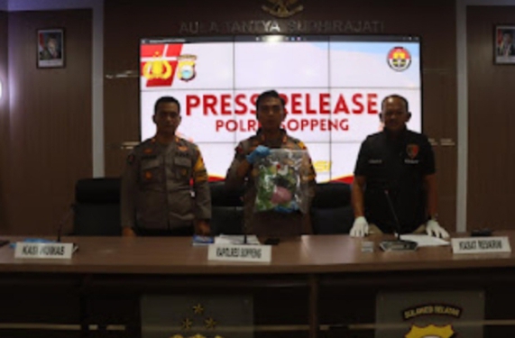 Dalam temu pers di Aula Tantya Sudhijarati Mapolres Soppeng, Jalan. La Tenri Bali, Kelurahan Lalabata Rilau, Kecanatan Lalabata, Kabupaten Soppeng, Sulawesi Selatan ( Sulsel ). Jumat (07/02).