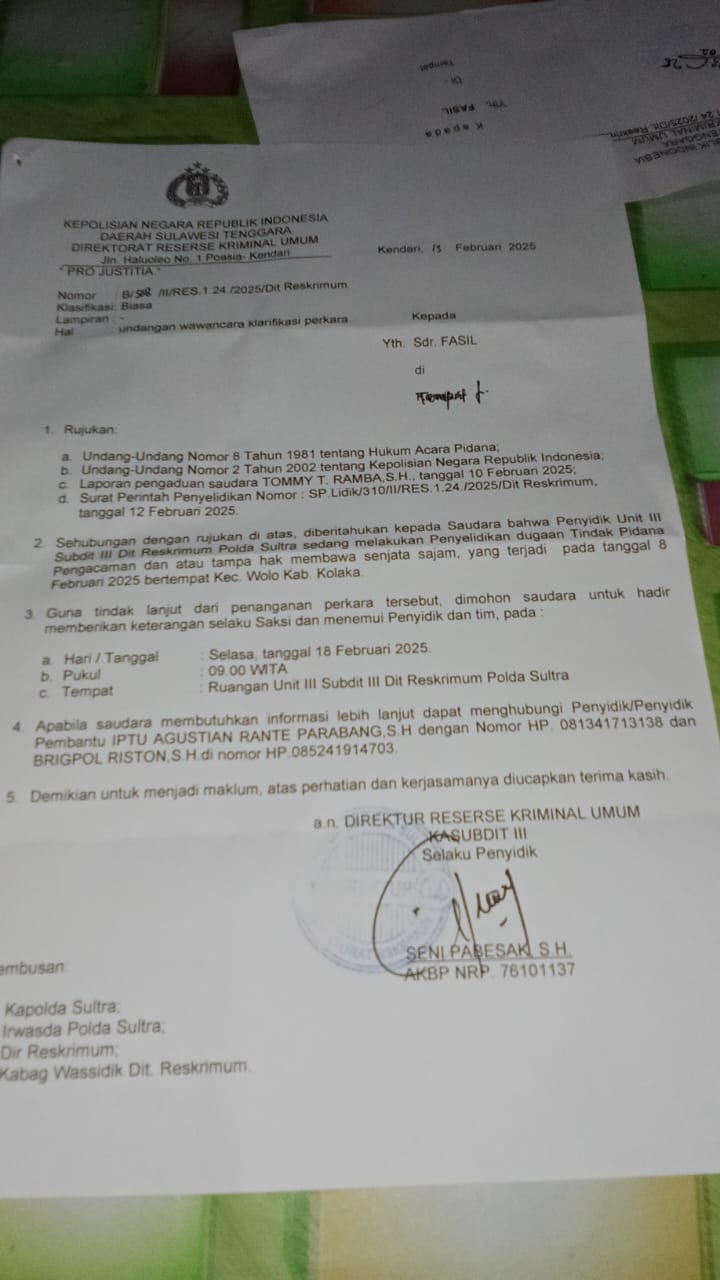 Kolaka, Centerinvestigasi.id – Tiga warga Kecamatan Wolo, Kabupaten Kolaka, Sulawesi Tenggara, dilaporkan ke polisi oleh PT Ceria Nugraha Indotama (PT CNI) atas tuduhan pengancaman dan membawa senjata tajam. Padahal, warga hanya berusaha mempertahankan kebun mereka yang diduga telah diserobot oleh pihak perusahaan.