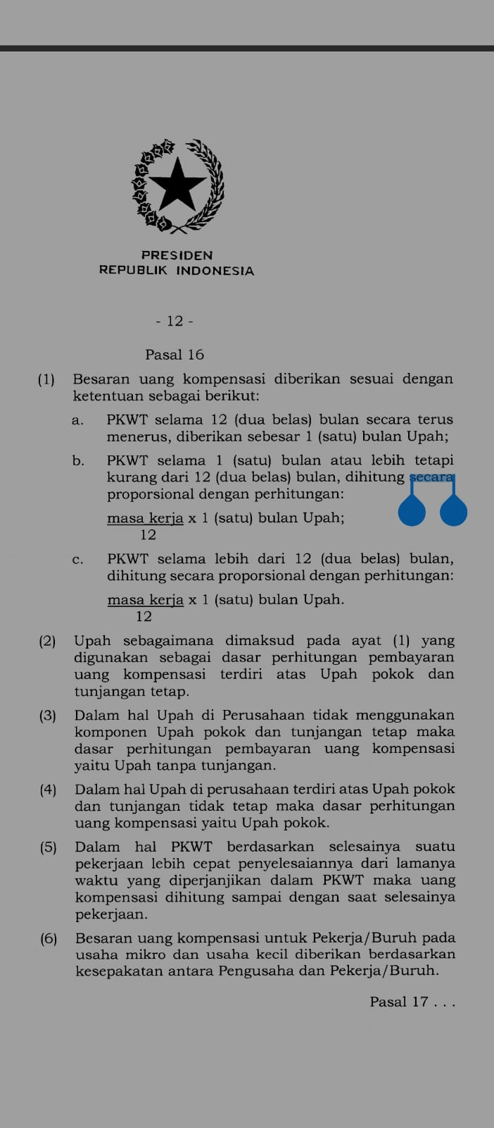 Pengusaha wajib memberikan uang kompensasi kepada pekerja dengan PKWT yang masa kerjanya telah berakhir sebesar satu bulan gaji.