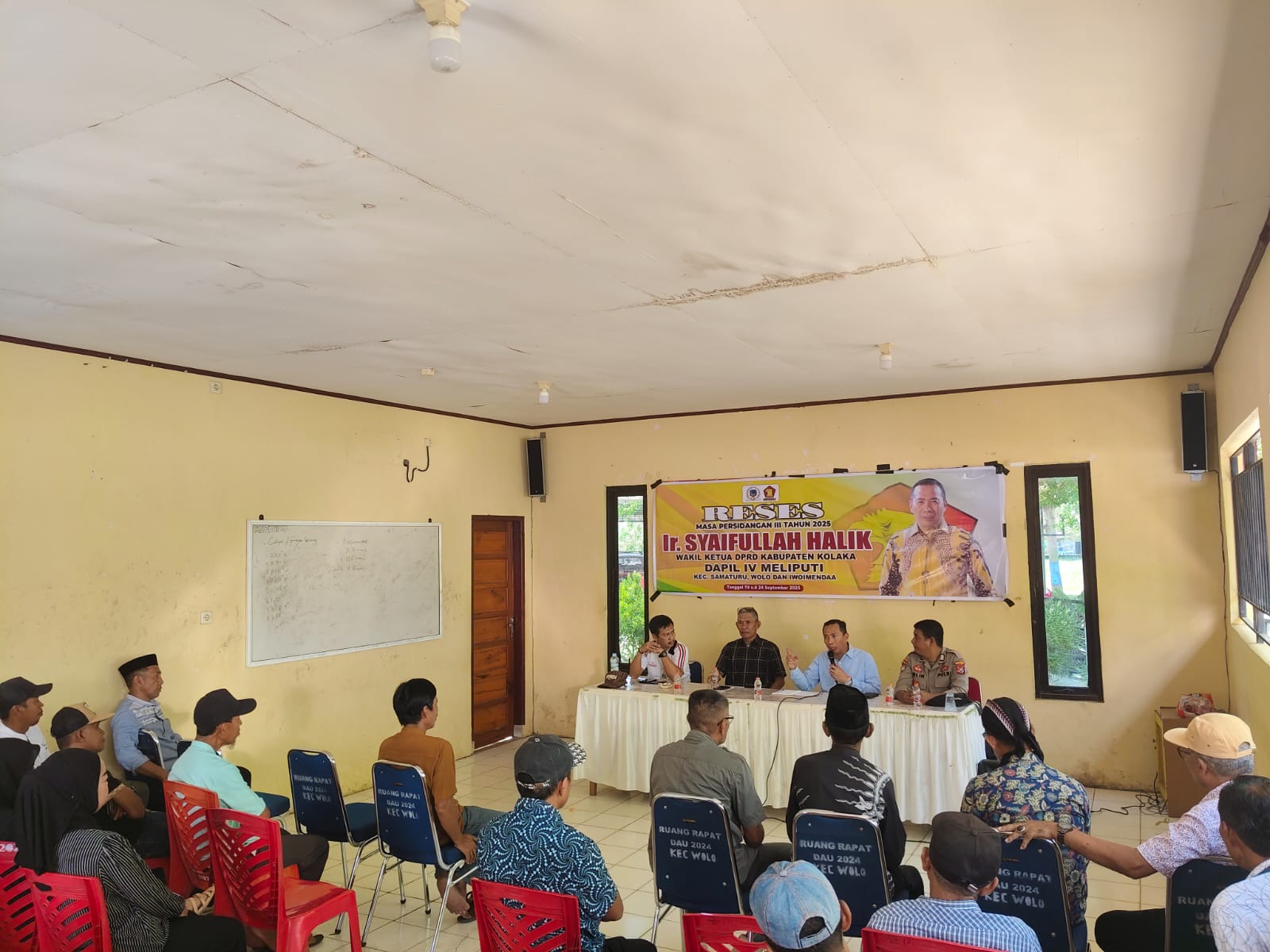 Kolaka, Centerinvestigasi.id – 20 September 2025. Wakil Ketua I DPRD Kabupaten Kolaka, Ir. Syaifullah, melaksanakan reses masa persidangan III tahun 2025 di Kecamatan Wolo. Kegiatan ini dihadiri Lurah Wolo Abd. Rahman, S.Pd., MM, tokoh masyarakat, perangkat desa, serta warga setempat.