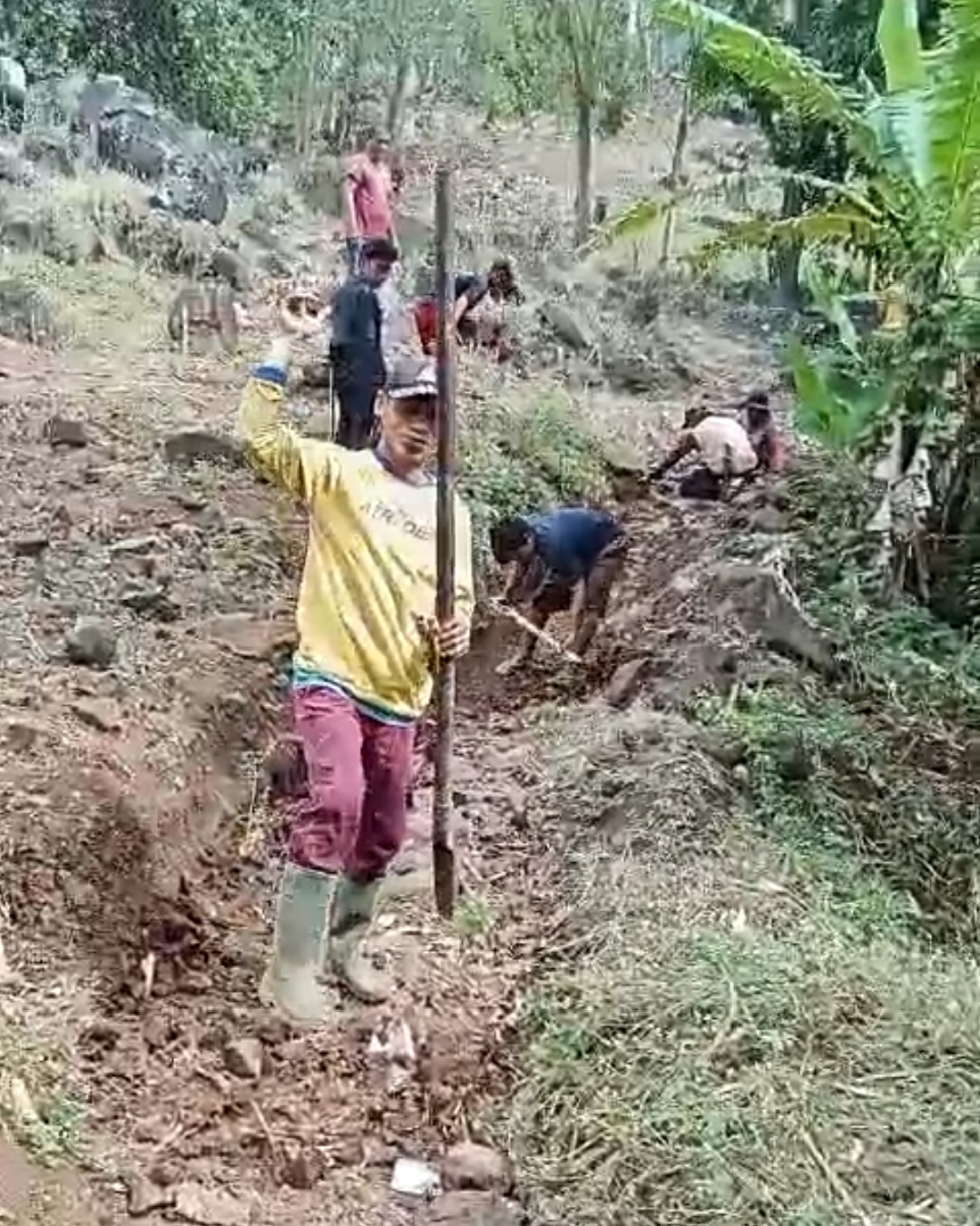 Dengan semangat gotong royong, mereka berharap jalan tersebut bisa kembali layak digunakan untuk mendukung aktivitas pertanian.