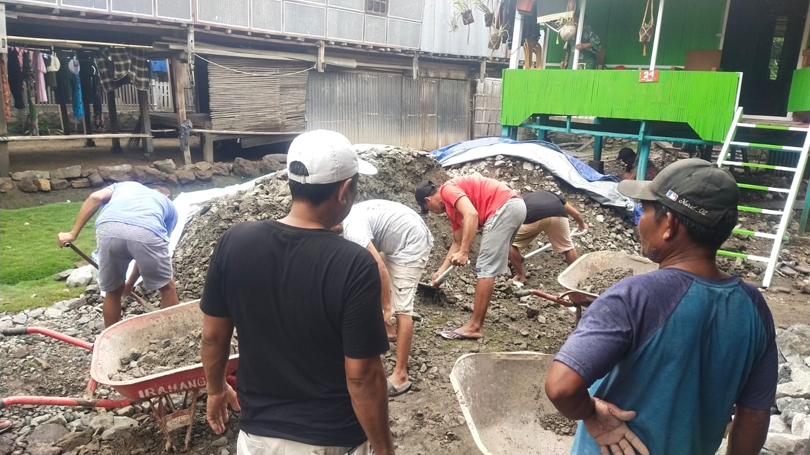 Kegiatan ini dilakukan untuk memberikan timbunan tanah di area bawah rumah yang selama ini kerap terendam banjir setiap musim hujan.
