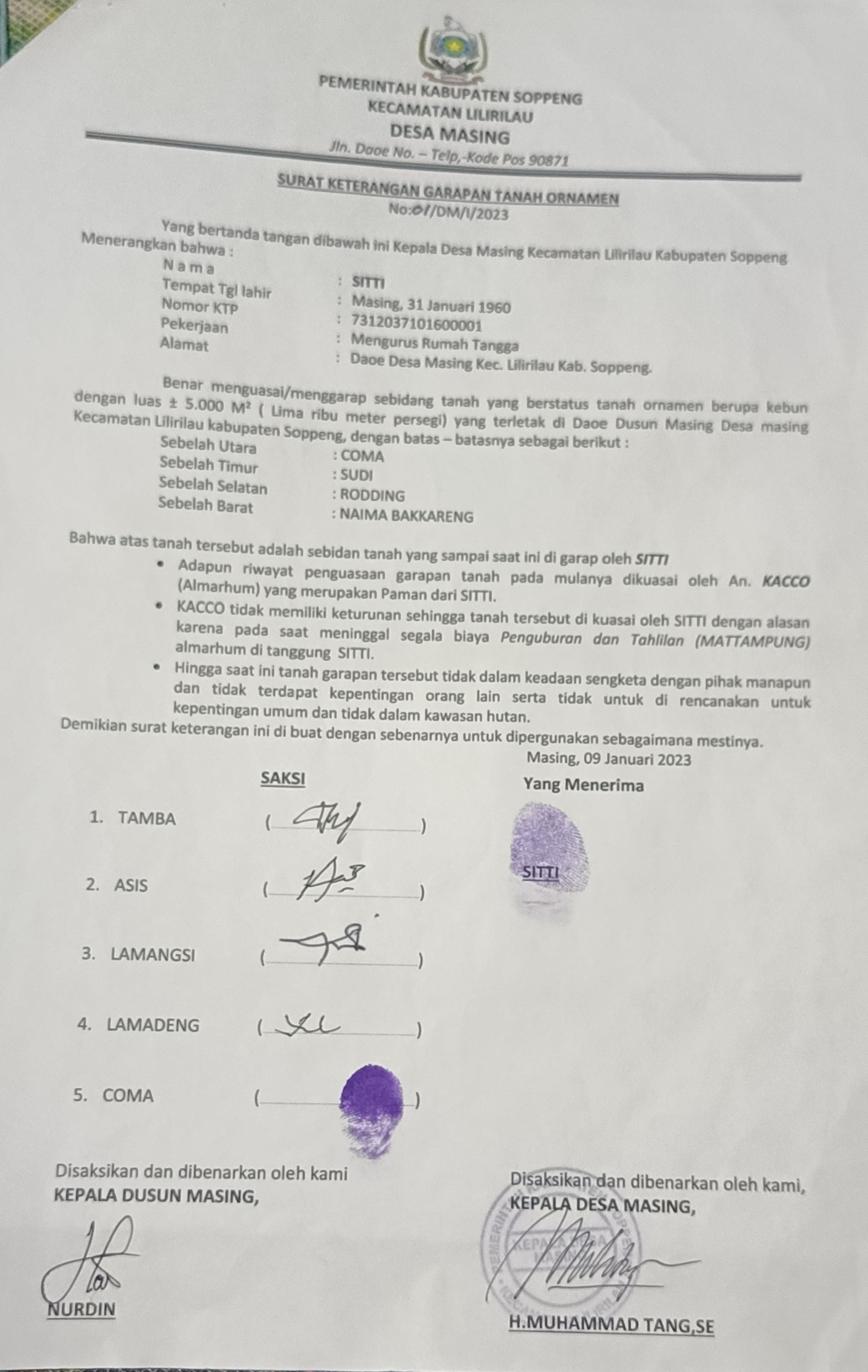 Menindaklanjuti hal tersebut, Kepala Desa Masing mengeluarkan surat resmi Nomor 119/DM/X/2025 perihal Permohonan Mediasi kepada Camat Lilirilau. Surat itu berisi permohonan agar persoalan ini dapat dimediasi lebih lanjut di tingkat kecamatan.