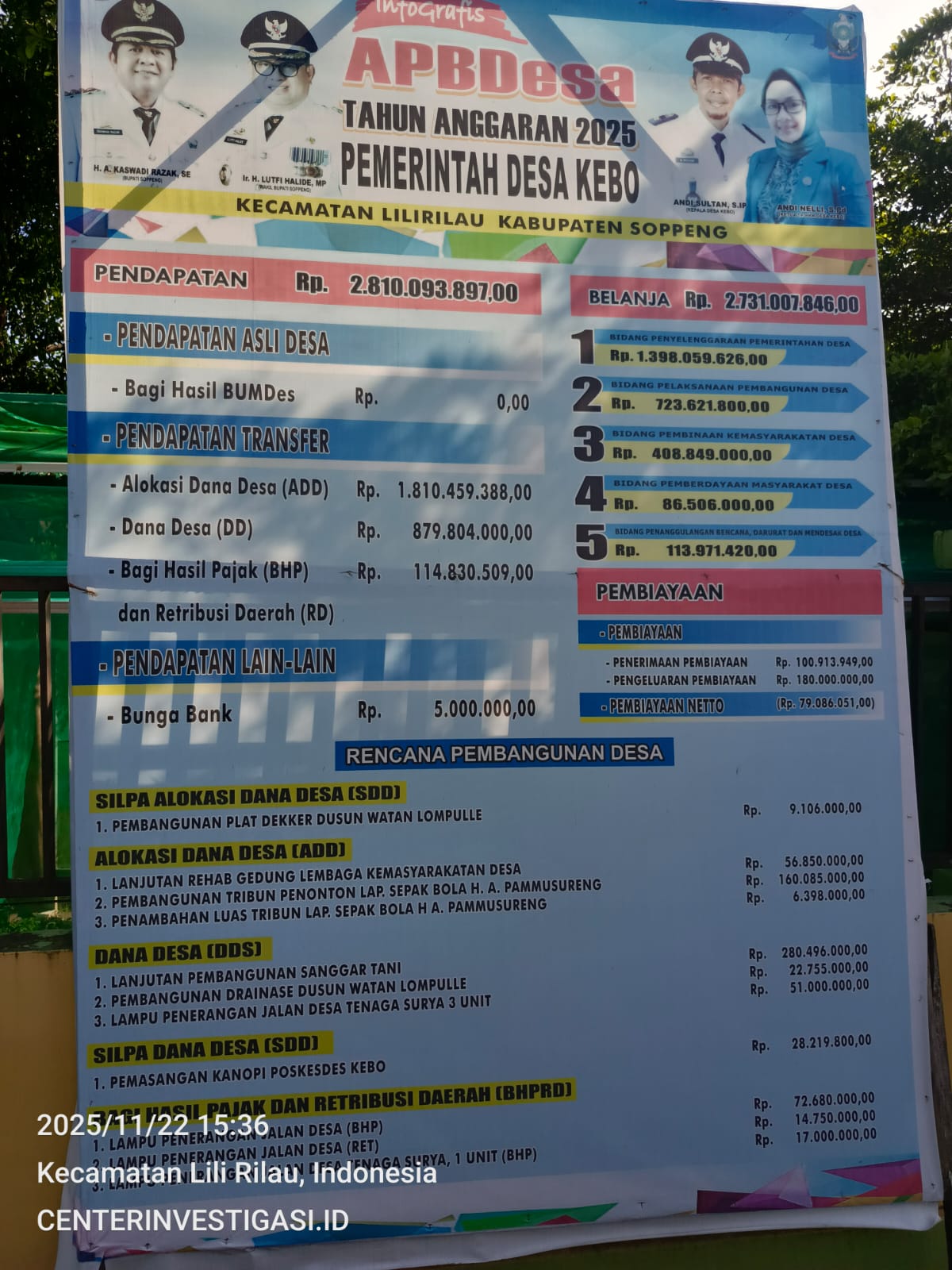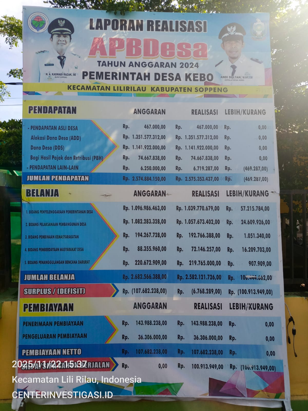 Watansoppeng, CenterInvestigasi.id — 22 November 2025. PEMERINTAH Desa Kebo, Kecamatan Lilirilau, Kabupaten Soppeng, resmi mempublikasikan Anggaran Pendapatan dan Belanja Desa (APBDesa) Tahun Anggaran 2025 beserta Laporan Realisasi APBDesa Tahun 2024.