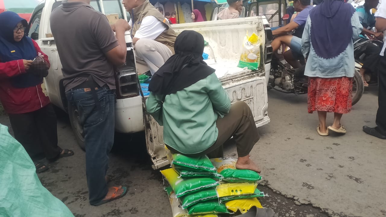 Beras SPHP kemasan 5 kilogram dengan harga Rp56.000 yang semestinya dibatasi maksimal dua karung per orang, diduga justru diborong oleh salah satu warga hingga sekitar 20 karung.