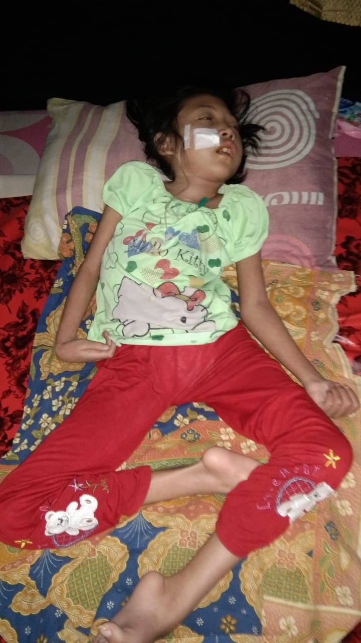 Setiap 10 hari, ia harus menjalani kontrol rutin di RSUD Palopo, termasuk pergantian NGT (Nasogastric Tube).