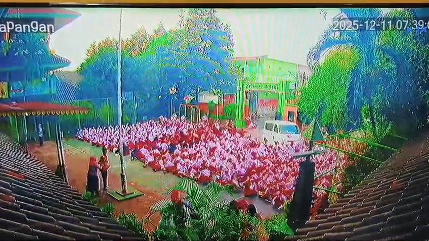 Rekaman video yang beredar di media sosial menunjukkan suasana panik, sementara sejumlah guru dan warga berupaya membantu korban.