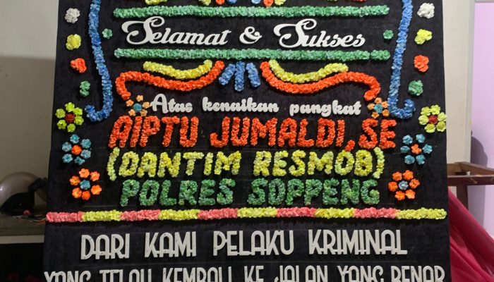 Soppeng ,Centerinvestigasi id, 27 Desember 2025 — Kenaikan pangkat satu tingkat dari Ajun Inspektur Polisi Dua (Aipda) menjadi Ajun Inspektur Polisi Satu (Aiptu) yang diraih oleh Jumaldi.SE selaku Kepala Unit (Kanit) Resmob Polres Soppeng, menjadi bentuk apresiasi institusi Kepolisian Negara Republik Indonesia atas dedikasi, loyalitas, dan kinerja yang konsisten dalam pengabdian kepada masyarakat.