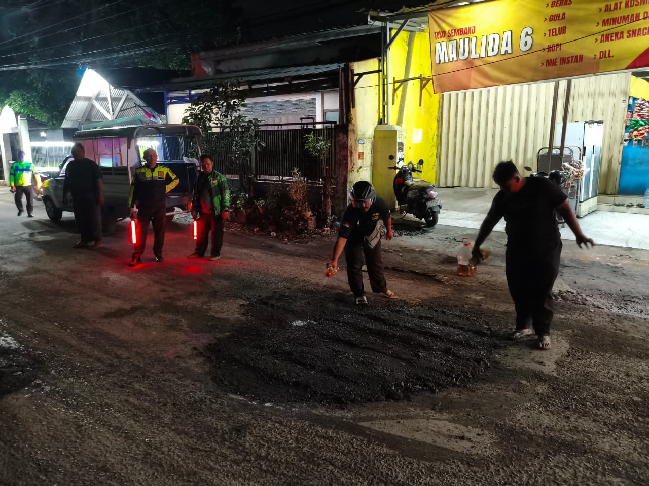 SIDOARJO – Kepedulian terhadap keselamatan pengguna jalan ditunjukkan warga yang tergabung dalam komunitas ILS (Info Lantas Sidoarjo). Secara swadaya, para relawan melakukan perbaikan jalan berlubang dengan pengaspalan di sejumlah titik di wilayah Sidoarjo.