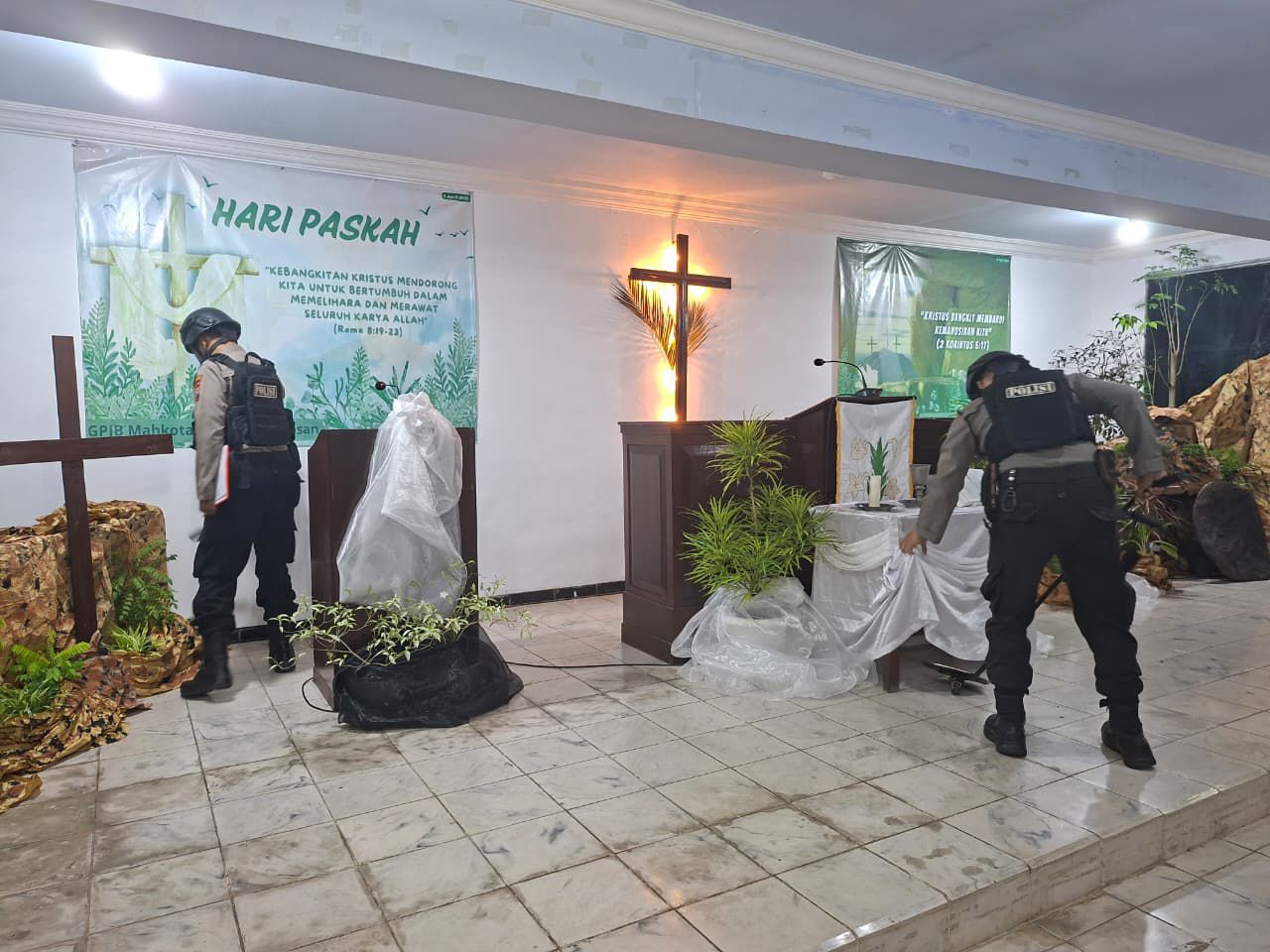 ​”Kami ingin memastikan saudara-saudara kita yang melaksanakan ibadah Paskah dapat merasa aman dan tenang. Selain area dalam gereja, kami juga memantau lingkungan sekitar dan kesiapan personel untuk merespons cepat jika terjadi gangguan kamtibmas,” ujar AKP Jupriadi.