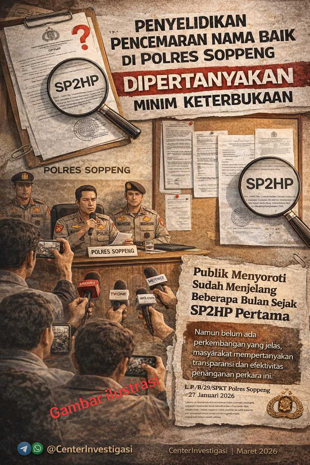 SOPPENG, Centerinvestigasi.id – Selasa, 7 Maret 2026. Penanganan laporan dugaan tindak pidana pencemaran nama baik dengan Nomor: LP/B/29/SPKT Polres Soppeng Polda Sulawesi Selatan tertanggal 27 Januari 2026 kini menjadi perhatian publik.