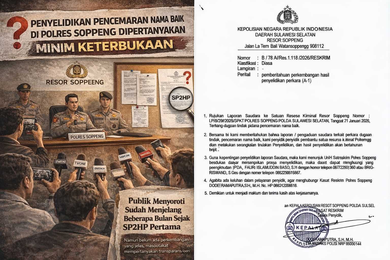 Proses Penyelidikan Dugaan Pencemaran Nama Baik di Polres Soppeng Dipertanyakan, Publik Soroti Minimnya Keterbukaan