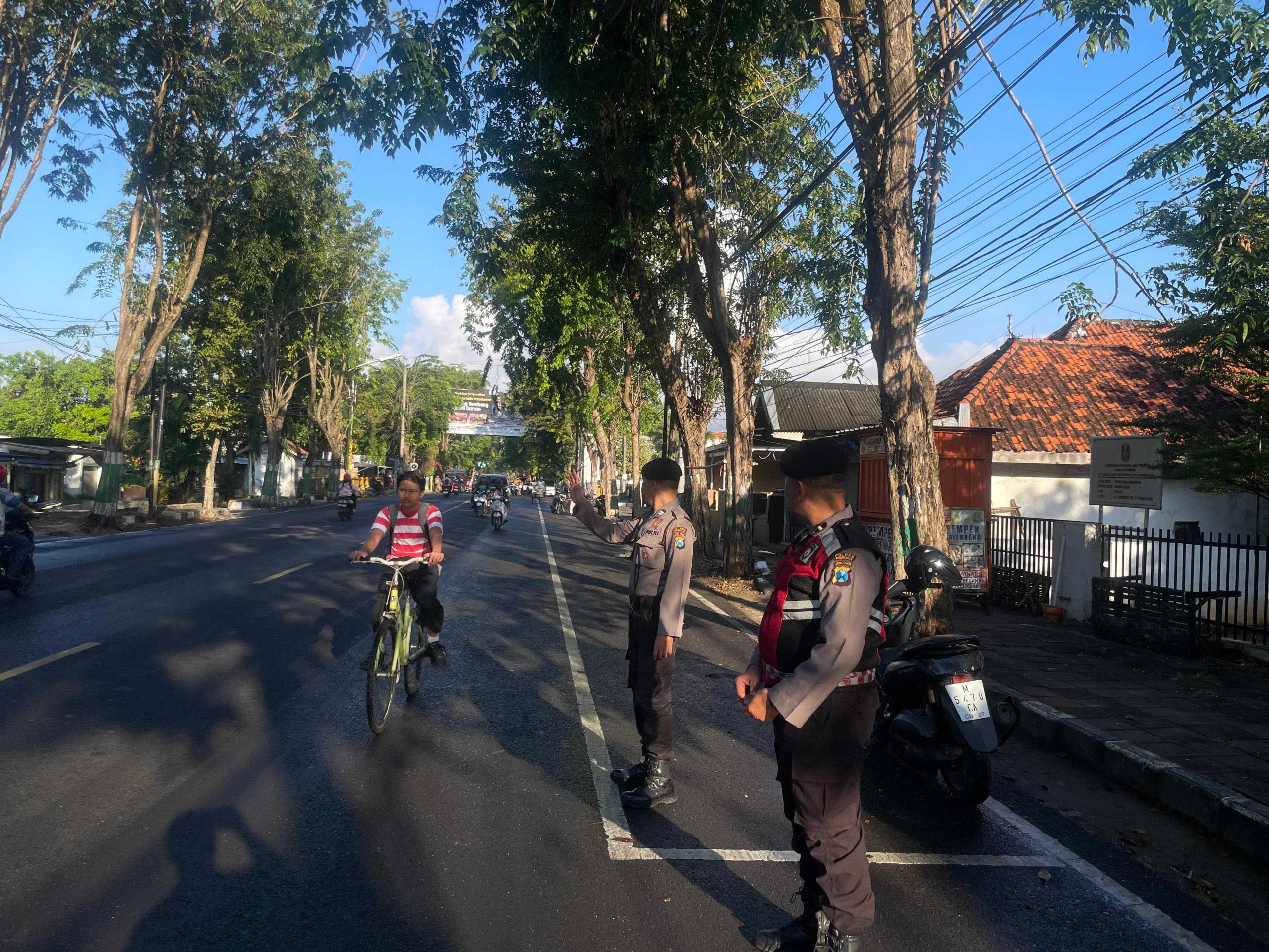 Kapolres Pamekasan melalui Kasihumas Polres Pamekasan, IPDA Yoni Evan Pratama, S.H., M.M., menyampaikan bahwa personel disebar ke berbagai lokasi mulai dari persimpangan jalan, kawasan pasar, hingga area sekolah.