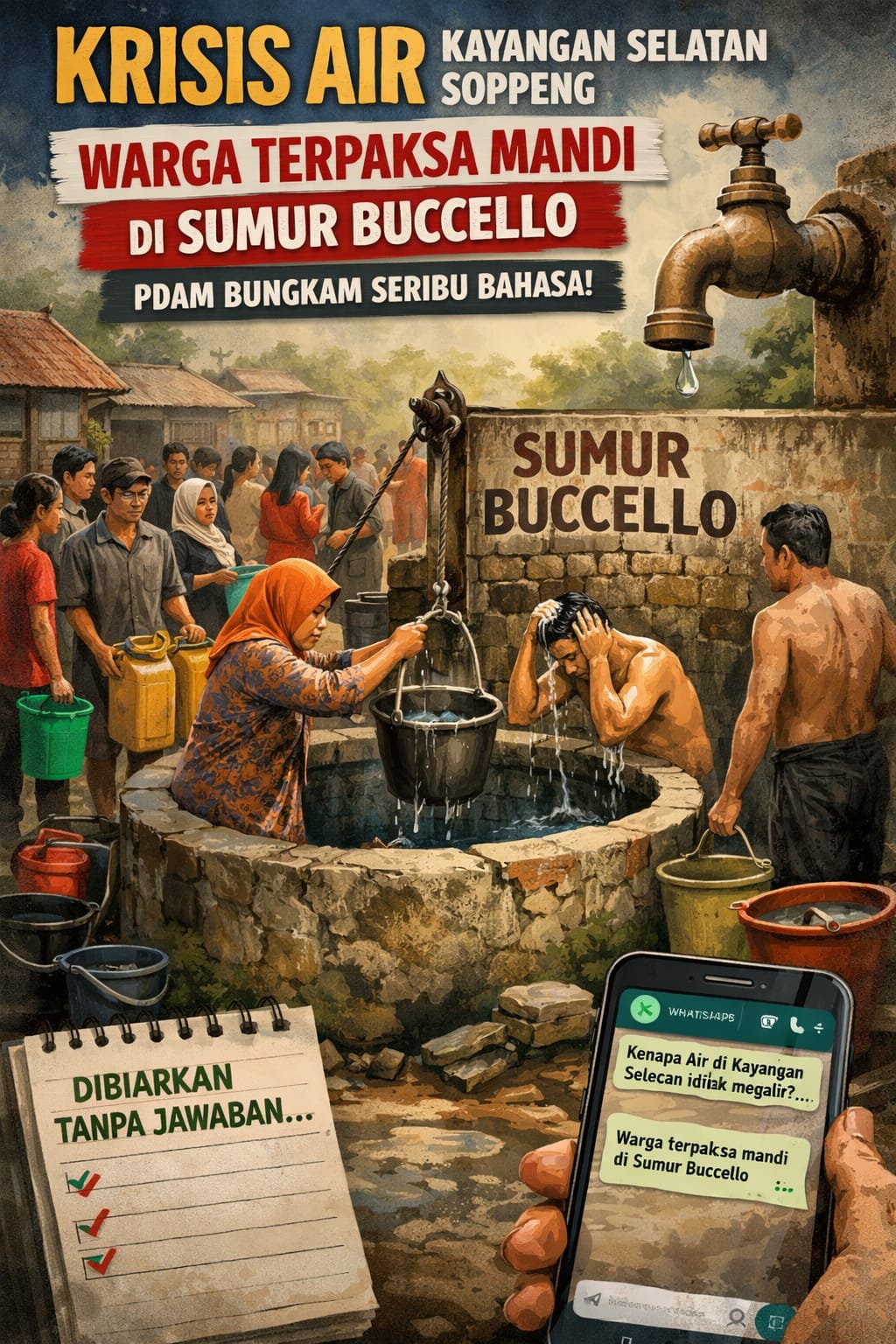 Krisis Air Melanda Kayangan Selatan Soppeng: Warga Terpaksa Mandi di Sumur Buccello, PDAM Bungkam Seribu Bahasa