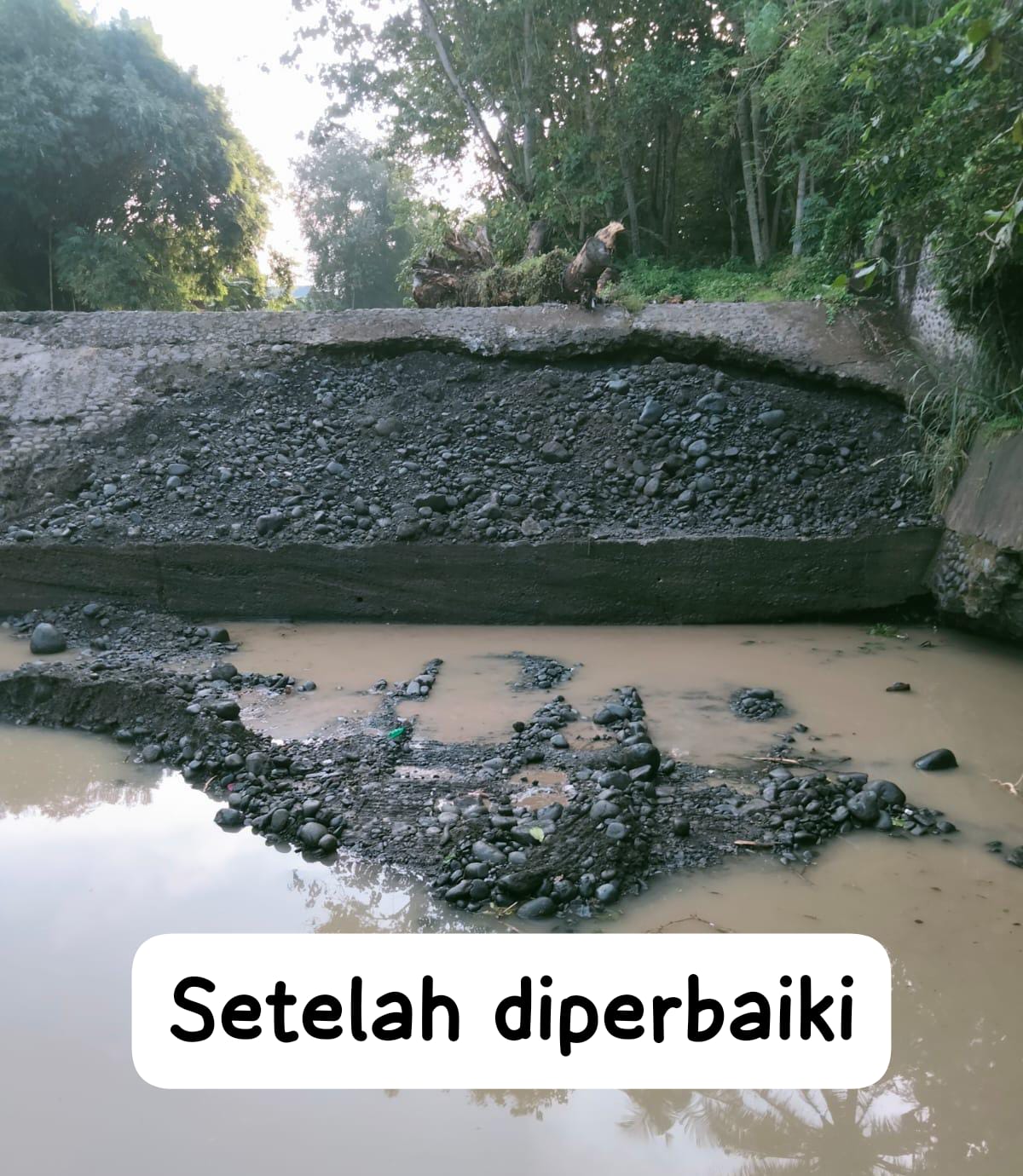 Sebelumnya, warga setempat mengeluhkan kondisi bendungan yang sangat memprihatinkan dan berpotensi roboh, yang dapat berdampak pada ratusan hektar lahan persawahan yang bergantung pada sumber air tersebut.