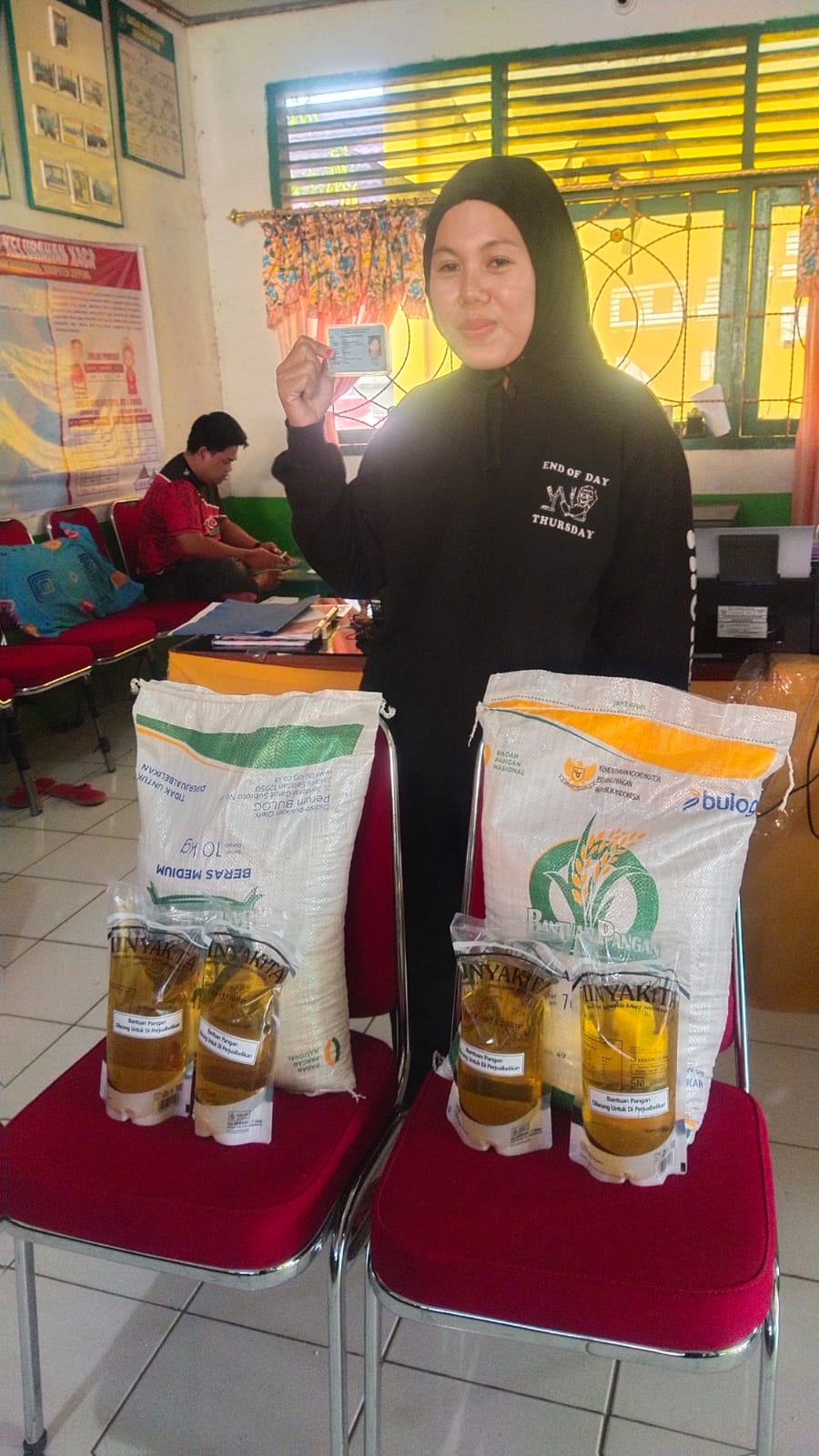 Sebanyak 722 karung beras dan 120 dus 4 liter minyak goreng didistribusikan kepada 361 Keluarga Penerima Manfaat. Setiap keluarga membawa pulang paket lengkap berupa 20 kilogram beras dan 4 liter minyak goreng sebagai wujud perhatian negara.